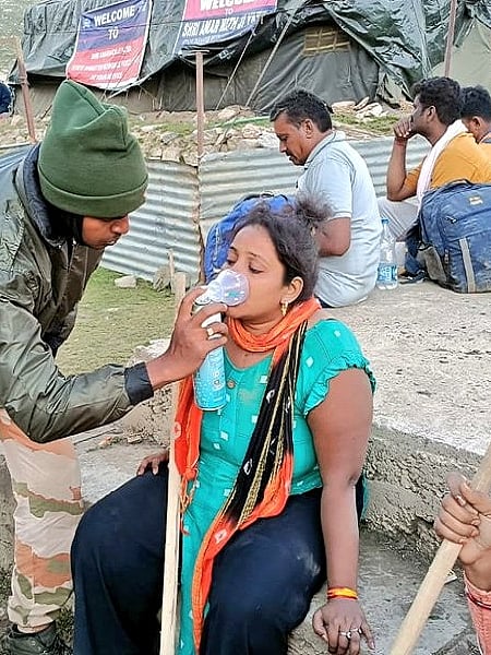 अमरनाथ यात्रा के लिए पहुंचे तीर्थ यात्रियों की मदद में जवान जुटे हुए हैं।