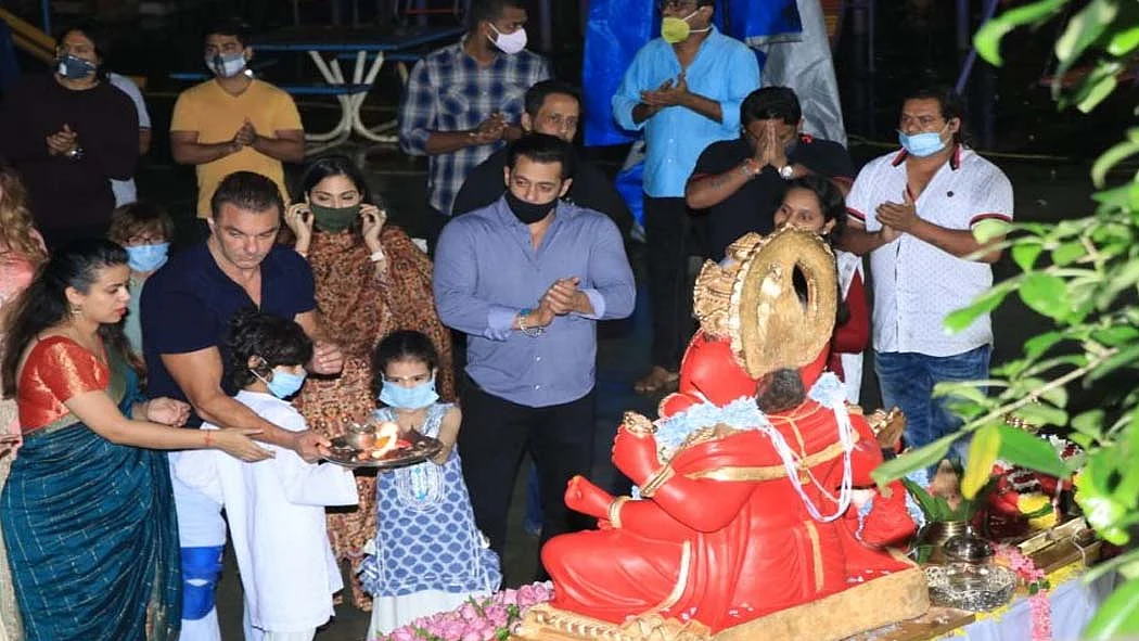 चर्चित अभिनेता सलमान खान लॉकडाउन लगाए जाने के करीब चार महीने बाद आखिरकार अपने परिवार के साथ जुड़े ताकि वह गणेश चतुर्थी के पावन समारोह में पूरे परिवार के साथ शामिल हो सकें। मुंबई में गणेश उत्सव दस दिनों तक मनाया जाता है। यह खासतौर से महाराष्ट्र राज्य का बहुत ही महत्वपूर्ण त्योहार है। कोरोना लॉकडाउन के बाद सलमान खान पहली बार अपने भाई सोहेल के घर पर पूरे परिवार से मिले। सलमान के पिता और लेखक सलीम खान कहते हैं कि उनका परिवार भारत के धर्मनिरपेक्ष मूल्य का हमेशा से ही बिना किसी दिखावे के समर्थन करता है। वह कहते हैं, “मेरी पत्नी हिंदू है। मैं मुसलमान हूं। हमारे सभी बच्चे स्वतंत्र विश्वासों के साथ बड़े हुए हैं। हमारे परिवार के लिए ईद और गणेश चतुर्थी जो क्रमशः एक दूसरे के बाद आते हैं, दोनों ही समान महत्व रखते हैं।”