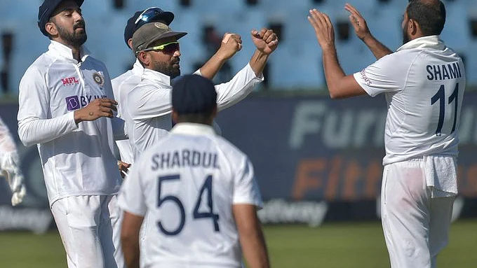 वहीं, भारतीय तेज गेंदबाजों ने असाधारण गेंदबाजी करते हुए दक्षिफ अफ्रीका को 199 रनों पर ही ढेर कर दिया। भारत की ओर से मोहम्मद शमी (5/44), जसप्रीम बुमराह (2/16), शार्दुल ठाकुर (2/51) और मोहम्मद सिराज (1/45) विकेट चटकाए।