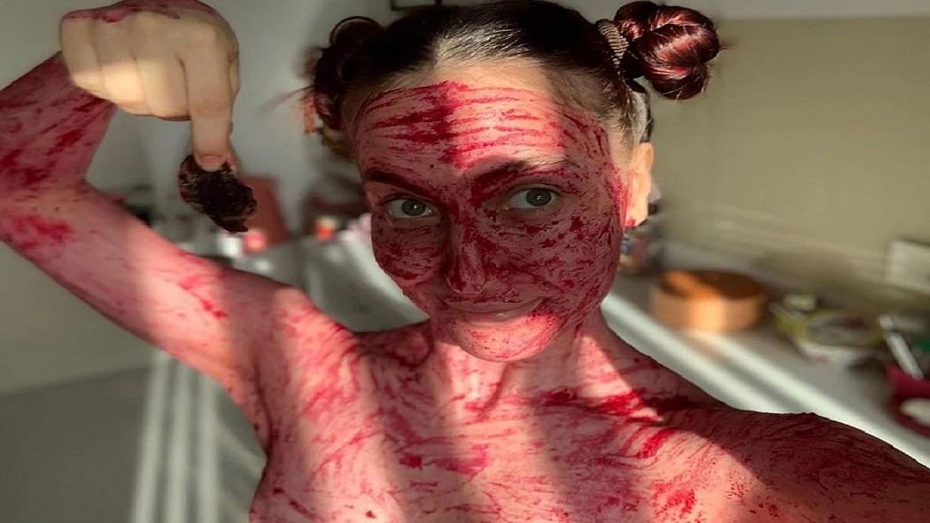 एली अवराम सोशल मीडिया की दुनिया पर काफी एक्टिव रहती हैं। एली इन दिनों अपनी हर एक्टिविटी की तस्वीरें फैंस के साथ शेयर कर रही हैं। हाल ही में उन्होंने अपनी कुछ लेटेस्ट तस्वीरें शेयर की हैं और खुत को बीटरूट गर्ल बताया। अब उनरी ये तस्वीरें सोशल मीडिया पर खूब वायरल हो रही हैं। वायरल तस्वीरों में एली चेहरे समेत पूरी बॉडी पर बीटरूट लगाए नजर आ रही है। लॉकडाउन में खुद की केयर करने और ब्यूटीफुल दिखने का उनका बेस्ट तरीका है। तस्वीरें शेयर कर एक्ट्रेस ने लिखा, ''बीटरूट की दुकान, बीटरूट की चहेती। घर में मुझे लड़की ने आइडिया दिया.. मैम पूरे बॉडी में लगाते हैं। इसलिए मैने चेहरे से लेकर पूरी बॉडी पर लगा लिया। बाद में उसने मुझे एलियन कहा। मुझे अच्छा लगा उसने मुझे अवेयर किया।'' एली की ये तस्वीरें इंटरनेट पर खूब वायरल हो रही हैं। फैंस उनकी इन तस्वीरों पर कमैंट कर अपनी प्रतिक्रिया दे रहे हैं।