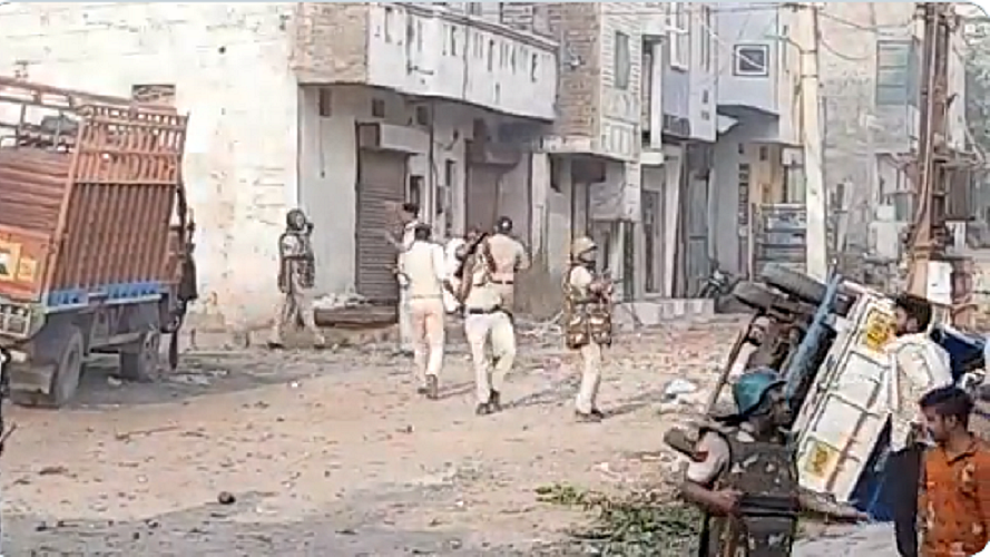 पुलिस के मुताबिक यात्रा के दौरान लाउडस्पीकर पर संवेदनशील नारे लगाये जा रहे थे और जल्द ही पथराव शुरू हो गया फिर हिंसा भड़क गयी।