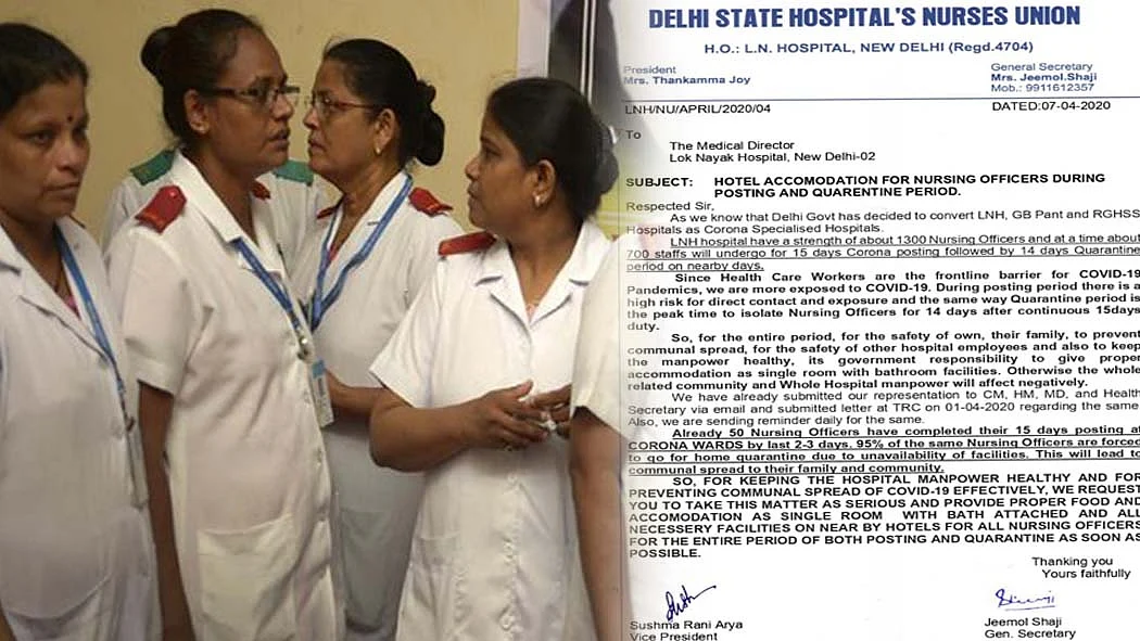 हालांकि डॉक्टरों की बात की जाए तो दिल्ली सरकार ने उनके लिए होटल ललित में ठहरने की व्यवस्था की है, ऐसे में वे खुद को वहां आसानी से क्वारंटाइन कर सकते हैं, लेकिन बाकी की नर्सें खुद को कहां क्वारंटाइन करेंगी? नर्सों को क्वारंटाइन की सुविधाएं अब तक नहीं दी गई है, जो किसी भी हेल्थ वर्कर के लिए जरूरी है। कई नर्सें खुलकर अपने हक की बात कहने में डर रही हैं। वे किस स्थिती में यहां अपनी जान जोखिम में डालकर काम कर रही हैं ये उनसे बेहतर कोई नहीं जानता है। नाम ना बताने की शर्त पर एक नर्स ने बताया कि कई बार तो 9 -9 नर्सें एक ही कमरे में रहती हैं और सभी के लिए सिर्फ एक बाथरूम होता है।