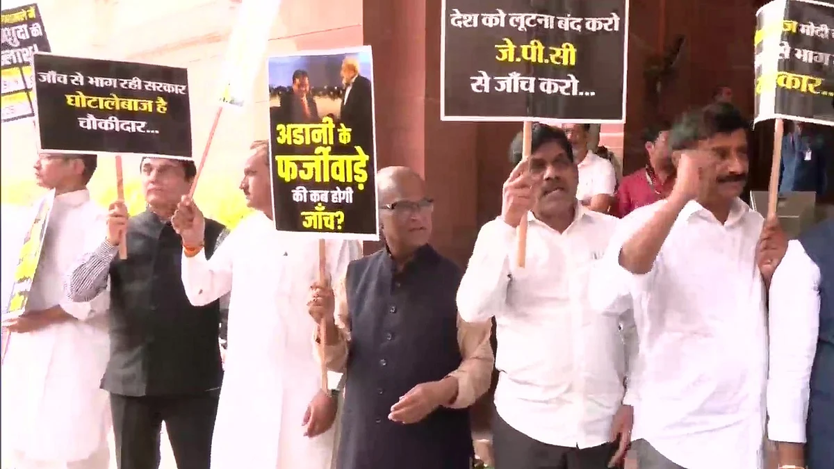 अडानी के मामले को लेकर विपक्ष का विरोध प्रदर्शन जारी है। विपक्ष इस मुद्दे पर संसद में चर्चा और संयुक्त संसदीय समिति (जेपीसी) से जांच की मांग कर रहा है। संसद के दोनों सदनों में इसको लेकर गतिरोध जारी है। विपक्षी सांसदों ने गुरुवार को मानव श्रृंखला बनाकर संसद के बाहर विरोध प्रदर्शन किया। कांग्रेस समेत सभी विपक्षी दल अडानी मामले को लेकर बीजेपी सरकार पर हमलावर है। कांग्रेस के कार्यकर्ताओं ने भी आज दिल्ली में अडानी विवाद को लेकर विरोध प्रदर्शन किया और इसकी संयुक्त संसदीय समिति से जांच कराने की मांग की।