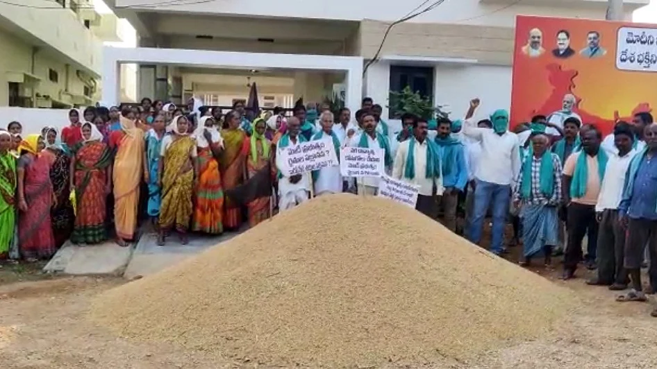 मोदी सरकार पर भड़के तेलंगाना के किसान! BJP सांसद के घर के सामने फेंका धान, पीएम मोदी के खिलाफ लगाए नारे