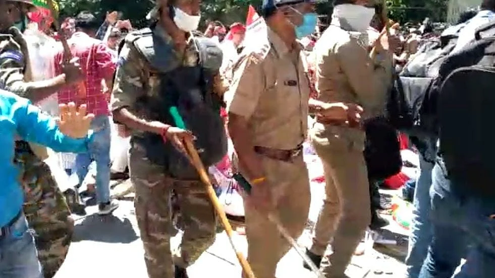 प्रदर्शनकारी काफी संख्या में राजभवन के अंदर जाने की जिद करने लगे। लेकिन प्रशासन ने उन्हें रोकने का प्रयास किया। सभी कार्यकर्ता गले में लाल रंग की पट्टी डाले हुए थे। लगातार सरकार विरोधी नारे लगा रहे थे। पुलिस ने रोका तो नहीं माने। इसके बाद पुलिस ने लाठीचार्ज करके सबको हिरासत में ले लिया।