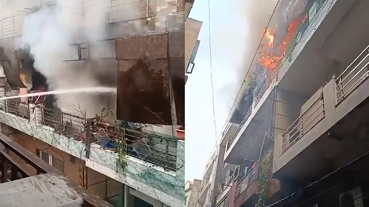 दिल्ली: LPG सिलेंडर में धमाके के बाद इमारत में लगी भीषण आग, देखें वीडियो