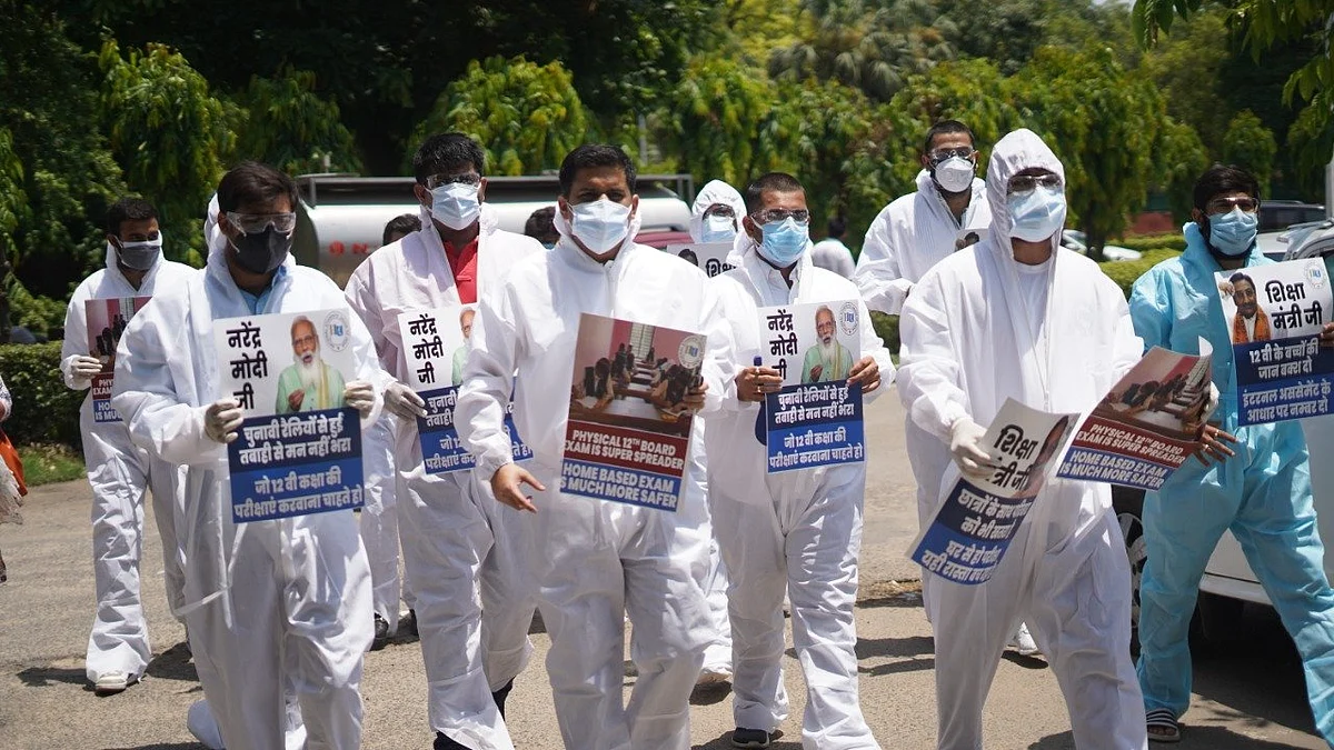 12वीं बोर्ड परीक्षा रद्द करने की मांग तेज, NSUI ने 'पहले सुरक्षा, फिर परीक्षा' के नारे के साथ किया प्रदर्शन