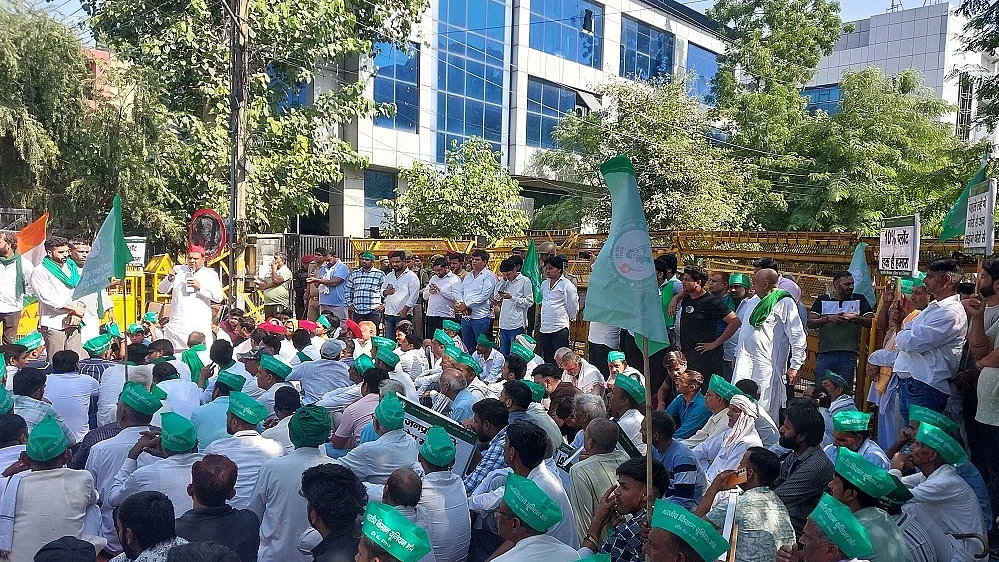 नोएडा प्राधिकरण के खिलाफ किसानों का हल्ला बोल, प्राधिकरण के बाहर तोड़ा पुलिस बैरिकेड