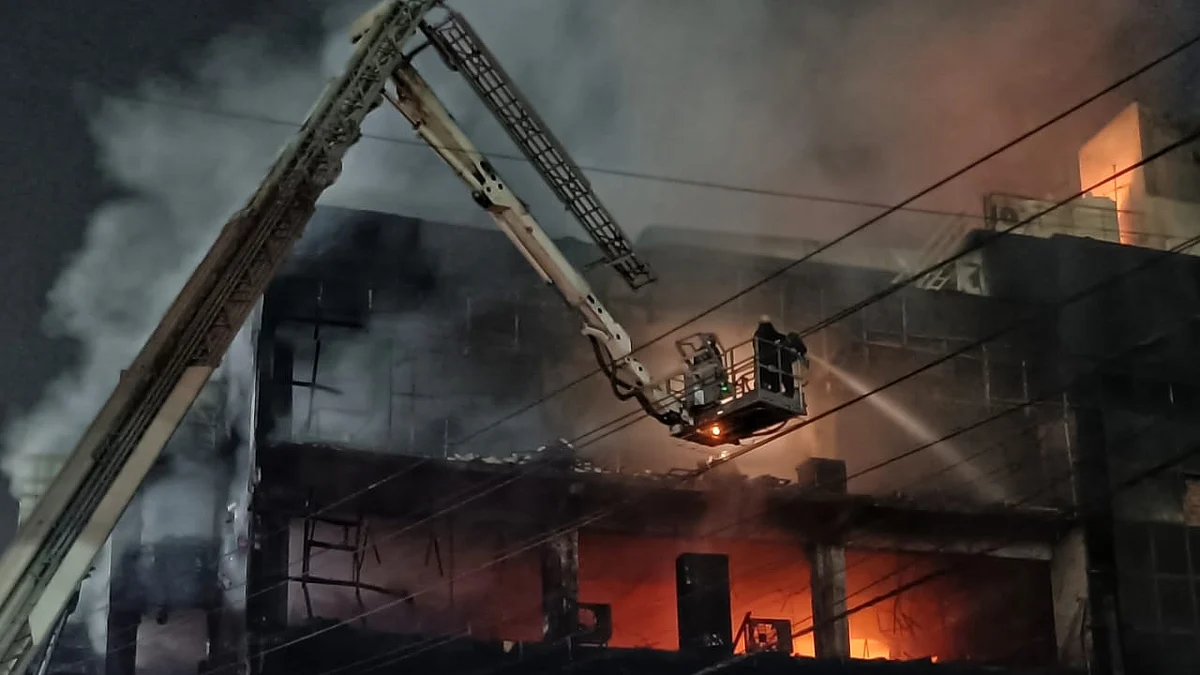 घटनास्थल से जारी दृश्यों के अनुसार, बदकिस्मत तीन मंजिला इमारत से काला धुआं निकलता देखा। दमकलकर्मियों ने आग पर पानी का छिड़काव करने के लिए अधिकतम संभव ऊंचाई तक पहुंचने के लिए दमकल की सीढ़ी का इस्तेमाल किया।