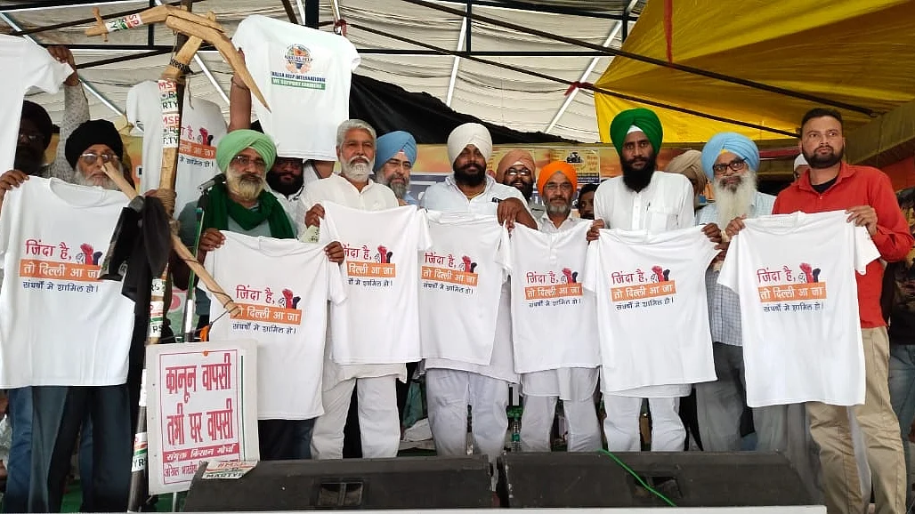 गाजीपुर बॉर्डर: किसानों ने टी-शर्ट लॉन्च की, लिखा- 'जिंदा है तो दिल्ली आ जा, संघर्षों में शामिल हो जा'