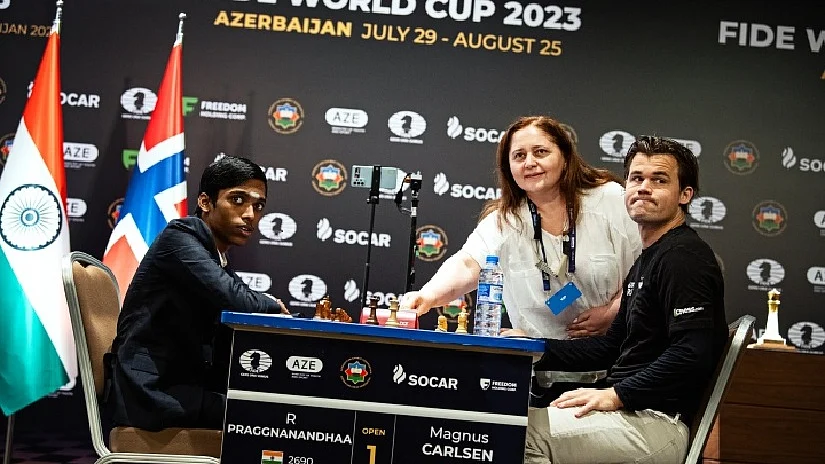 बाकू में आयोजित फिडे विश्व कप के फाइनल के टाई-ब्रेकर गेम में गुरुवार को पूर्व विश्व चैंपियन मैग्नस कार्लसन ने भारत के शतरंज ग्रैंडमास्टर आर. प्रगनानंदा को हरा दिया है। इसी के साथ 18 वर्षीय भारतीय युवा खिलाड़ी प्रगनानंदा का फिडे वर्ल्ड कप जीतने का सपना टूट गया है।