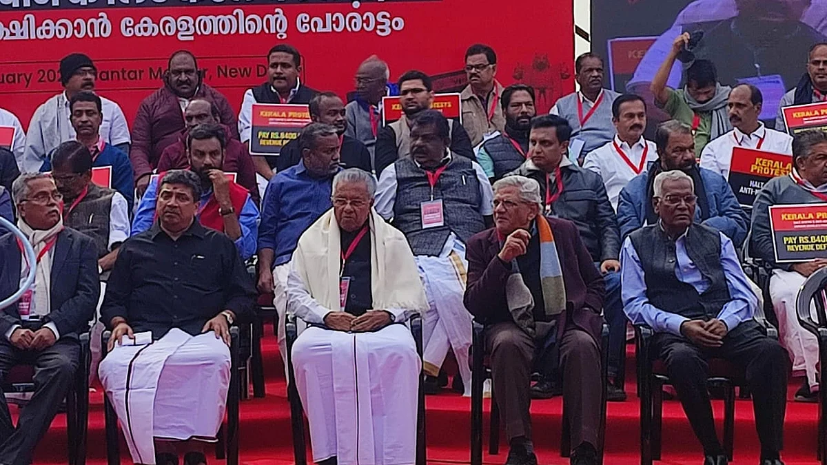 केरल के मुख्यमंत्री पिनाराई विजयन ने अपने मंत्रिमंडल और शीर्ष वामपंथी सदस्यों के साथ गुरुवार को दिल्ली के जंतर-मंतर पर 'वित्तीय अन्याय' को लेकर केंद्र के खिलाफ विरोध प्रदर्शन किया। सीएम विजयन दिल्ली के सीएम अरविंद केजरीवाल, पंजाब के सीएम भगवंत मान और जम्मू-कश्मीर के पूर्व मुख्यमंत्री- फारूक अब्दुल्ला के साथ केरल हाउस से विरोध स्थल की ओर चले।