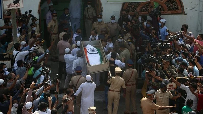 भारतीय सिनेमा के दिग्गज दिलीप कुमार को सैकड़ों नम आंखों के बीच मुंबई के सांताक्रूज इलाके के जुहू कब्रिस्तान में सुपुर्द-ए-खाक किया गया। तिरंगे में लिपटे अभिनय सम्राट को पारंपरिक धुनों के बीच 21 बंदूकों से फायरिंग कर पूरे राजकीय सम्मान के साथ अंतिम विदाई दी गई।
