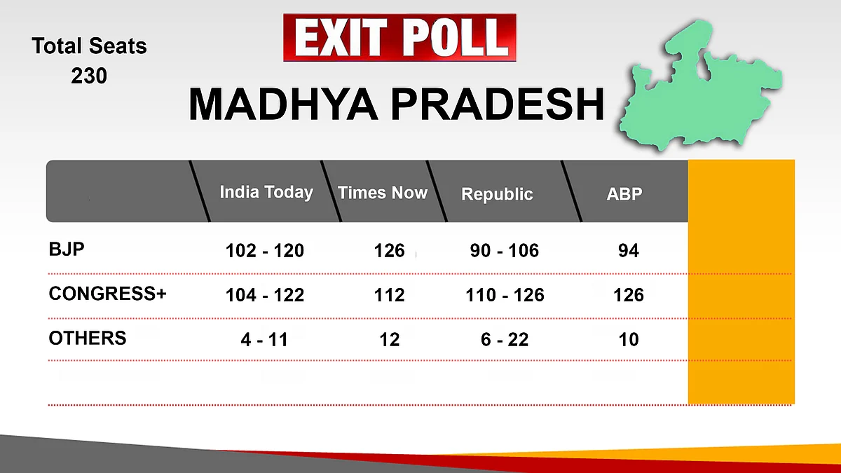 मध्य प्रदेश: ज्यादातर एग्जिट पोल में कांटे की टक्कर, एबीपी और इंडिया टुडे ने कांग्रेस को दिया बहुमत
