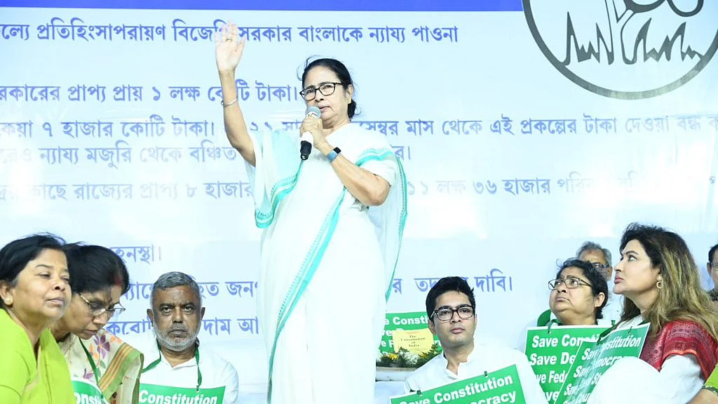 ममता बनर्जी ने पश्चिम बंगाल के प्रति केंद्र सरकार के भेदभावपूर्ण रवैये के विरोध में कोलकाता में बुधवार को दो दिवसीय धरना शुरू किया है। उन्होंने बीजेपी को ‘दुशासन’ करार देते हुए कहा कि इसने “LIC और SBI को बेचकर देश को बर्बाद कर दिया है।” उन्होंने कहा, “भारत में हर राजनीतिक दल को इस बीजेपी सरकार को हटाने के लिए एकजुट होना चाहिए। उन्होंने नारा दिया, ‘दुशासन’ भाजपा को हटाओ और देश के आम आदमी तथा भारतीय लोकतंत्र को बचाओ।”