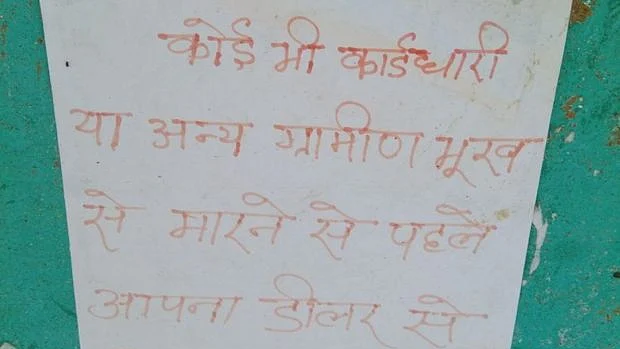 झारखंड में एक सरकारी राशन की दुकान चलाने वाले ने अपनी दुकान पर बेहद अजीब पोस्टर चिपकाया है। इस पोस्टर में लिखा गया है कि कोई भी कार्डधारी या ग्रामीण भूख से मरने से पहले अपने डीलर से भेंट करें।