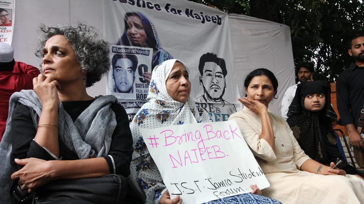 जेएनयू के लापता छात्र नजीब की बरामदगी के लिए जंतर-मंतर पर प्रदर्शन, अरुंधति रॉय के साथ जुटीं कई पीड़ित महिलाएं