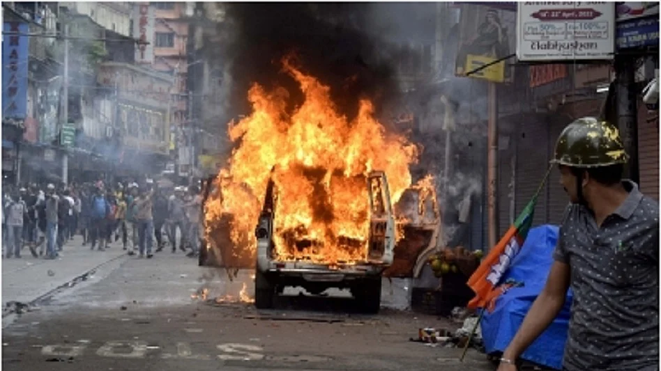 कोलकाता की सड़कों पर बीजेपी कार्यकर्ताओं का बवाल, पुलिस वैन को लगाई आग, अधिकारी को दौड़ा-दौड़ाकर पीटा