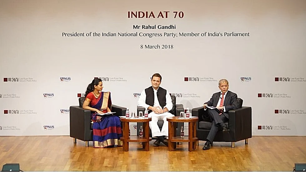 कांग्रेस अध्यक्ष राहुल गांधी ने बीजेपी और केंद्र की मोदी सरकार पर तीखा हमला बोला है। उन्होंने कहा कि इस समय भारत में चारों तरफ डर का माहौल है, चुनाव जीतने के लिए लोगों को बांटने और उनके गुस्से का इस्तेमाल करने की राजनीति हो रही है। राहुल गांधी सिंगापुर के प्रतिष्ठित 'ली कुआन यिऊ स्कूल ऑफ पब्लिक पॉलिसी' में एक पैनल डिस्कशन में हिस्सा लेते हुए ये बातें कहीं। राहुल गांधी ने कहा कि भारत के संस्थागत ढांचे के सामने इस समय बहुत बड़ी चुनौतियां हैं।