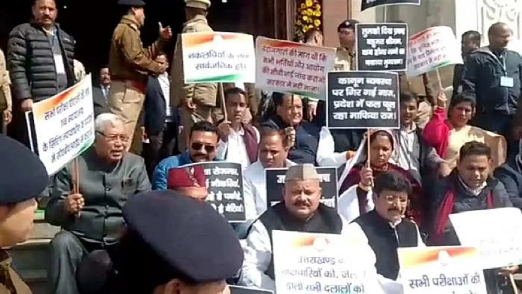 उत्तराखंड बजट सत्र शुरू, राज्यपाल के अभिभाषण के दौरान हंगामा, सदन के बाहर कांग्रेस का प्रदर्शन