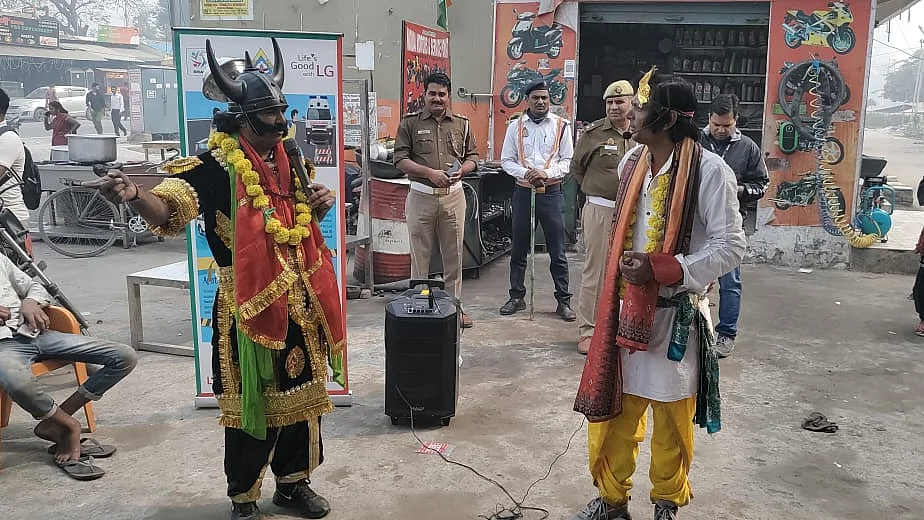 सड़क हादसों और होने वाली मौत पर 'यमराज' कर रहे जागरुक, ट्रैफिक पुलिस ने काटा कई लोगों का चालान