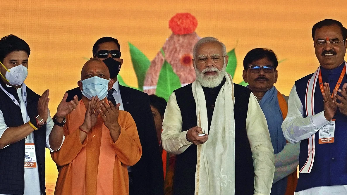 मौका था नोएडा-एक्सप्रेसवे पर जेवर एयरपोर्ट के शिलान्यास का। मंच पर मौजूद थे प्रधानमंत्री नरेंद्र मोदी, नागरिक उड्डयन मंत्री ज्योतिरादित्य सिंधिया, यूपी सीएम योगी आदित्यनाथ और उनके डिप्टी केशव प्रसाद मौर्य। जहां प्रधानमंत्री ने अपने भाषण में डबल इंजन सरकार के सियासी फायदे गिनाए, वहीं योगी आदित्यनाथ का रिकॉर्ड एक बार फिर ध्रुवीकरण की धुन पर बजता नजर आया। उन्होंने अपने भाषण में जेवर एयरपोर्ट के लाभों की तो सूची रखी, लेकिन जिन्ना का जिक्र बिना नहीं रह सके।