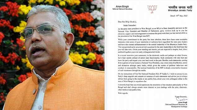 पत्र में आगे लिखा है, "जेपी नड्डा जी के निर्देश पर मैं आपको इस तरह के बयान देने पर पार्टी की गहरी पीड़ा और चिंता से अवगत कराना चाहता हूं और आपको सलाह देता हूं कि आप राज्य में अपने स्वयं के सहयोगियों के बारे में मीडिया या किसी भी सार्वजनिक मंच पर जाने से हमेशा परहेज करें। पश्चिम बंगाल में या कहीं और।"