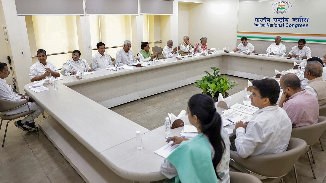 कांग्रेस अध्यक्ष मल्लिकार्जुन खरगे, पूर्व पार्टी प्रमुख राहुल गांधी, प्रभारी महासचिव (संगठन) के.सी. वेणुगोपाल, कर्रा, जम्मू-कश्मीर स्क्रीनिंग कमेटी के प्रमुख सुखजिंदर सिंह रंधावा, सलमान खुर्शीद सहित अन्य नेता अखिल भारतीय कांग्रेस कमेटी (एआईसीसी) मुख्यालय में बैठक में शामिल हुए।