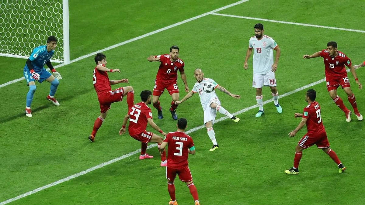 स्पेन ने रूस में जारी फीफा विश्व कप के ग्रुप बी के एक रोमांचक मुकाबले में बुधवार देर रात ईरान को 1-0 से शिकस्त दी। मैच का एकमात्र गोल स्ट्राइकर डिएगो कोस्टा ने किया और स्पेन को विश्व कप के 21वें संस्करण की पहली जीत दिलाई। कजान ऐरेना में खेले गए इस मुकाबले में ईरान ने रक्षात्मक रूप से शानदार प्रदर्शन किया और स्पेन के गेंद पर बेहतर नियंत्रण के बावजूद उनके फारवर्ड खिलाड़ियों को अपने बॉक्स में अधिक जगह नहीं दी। स्पेन को नौवें मिनट में बॉक्स के बाहर बाएं फ्लेंक पर फ्री-किक मिली। मिडफील्डर डेविड सिल्वा ने बेहतरीन क्रॉस दिया लेकिन बॉक्स में कोई भी खिलाड़ी गेंद के पास नहीं पहुंच पाया।
