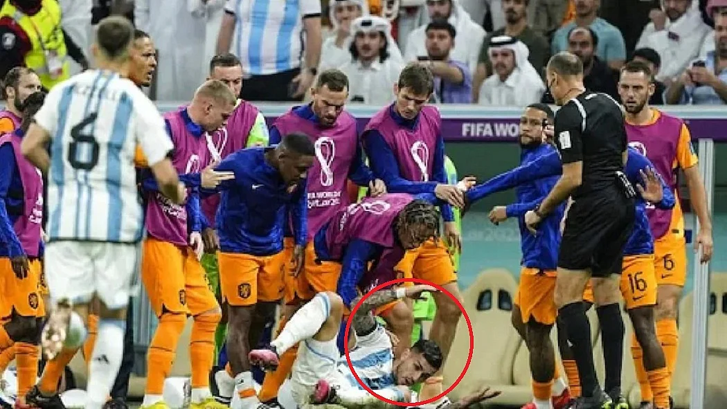 यह पूरा वाकया खेल के 88वें मिनट में हुआ, तब अर्जेंटीना की टीम 2-1 से आगे थी। अर्जेंटीना के मिडफील्डर लिएंड्रो परेडेस ने नाथन एके को टैकल (जमीन पर गिराना) कर दिया जिसके चलते मैच रेफरी ने फाउल के लिए सीटी बजा दी। परेडेस इससे आगबबूला हो गए और उन्होंने गेंद को नीदरलैंड के डगआउट में दे मारा।